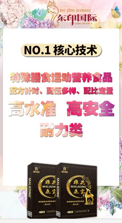特膳澳丁(雄花鹿宝)秉承“坚持天然,道地选材”的原则,所选的原料人参、黄精、黑果枸杞等都是经过多次筛选才能成为我们的原料。特膳澳丁(雄花鹿宝)还特别加入鹿四宝—鹿血、鹿鞭、鹿筋、鹿尾。比起东印国际原本的澳丁,其效果更胜一筹。因为原料选的考究,加上先进技术提取,比起市面上传统的产品,见效快,不伤身。一般,短期内就能看到效果,长期使用能使精力充沛,恢复疲劳体力,重新达到阳刚体魄。→官方正品,一手货源添加东印国际澳丁升级版特膳澳丁(雄花鹿宝片)董事林晓微信:Linxiao_29