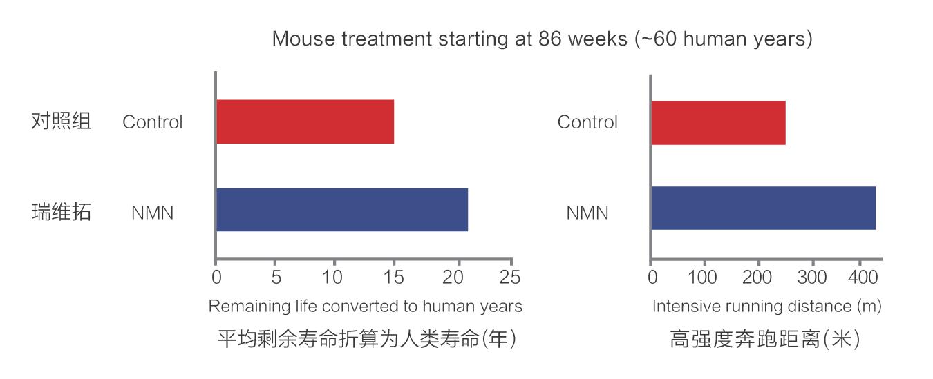 比如在2018年3月发表于《细胞》的最新研究报告中,安迈恩成功逆转了老龄哺乳动物的肌肉萎缩和血管死亡,并极大增强了动物的运动活力。服用NMN的高龄动物体力和爆发力均超过未服用的同龄动物60%以上,甚至超越了青年水平。